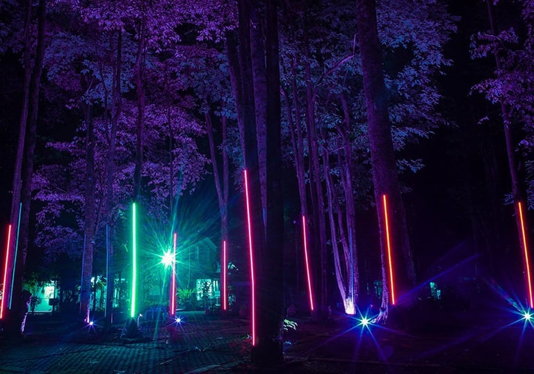 Wisata malam kekinian dengan ribuan lampu LED dan proyeksi audiovisual mendalam, mengajak pengunjung untuk edukasi konservasi sambil menikmati nuansa magis malam.